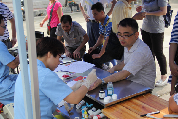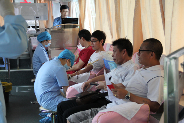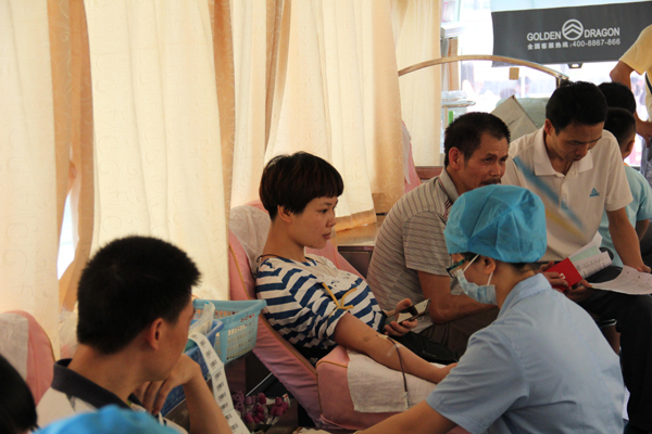 早上八点多,志愿参加无偿献血的人员已陆续到明富昌体育馆门前等候无偿献血。献血活动开始后,工作人员有条不紊地指引他们按照献血流程进行献血。有些职工以前献过血,对献血流程很熟悉,很快完成了献血;有些职工虽然是第一次献血,但是十分积极,还主动要求多献;有些职工献血的热情很高,却因为不符合献血条件失望而归,纷纷表示要锻炼好身体、争取下年奉献一份爱心;有些职工去年年底才自觉到血站献血,因未够半年期限不能再次献血,感到十分惋惜。