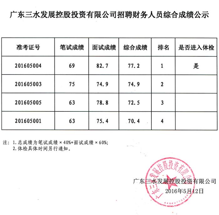 广东球盟会qmh控股投资有限公司招聘财务人员综合成绩公示
