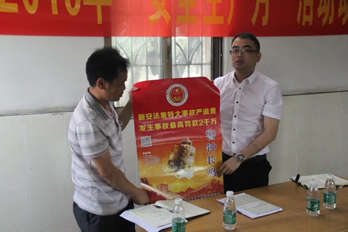 活动的最后,陆卓勇副总经理向盈港公司派发了安全生产宣传海报和相关学习手册。
