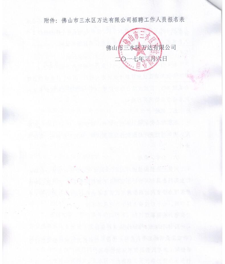 佛山市三水区万达有限公司招聘工作人员报名表
