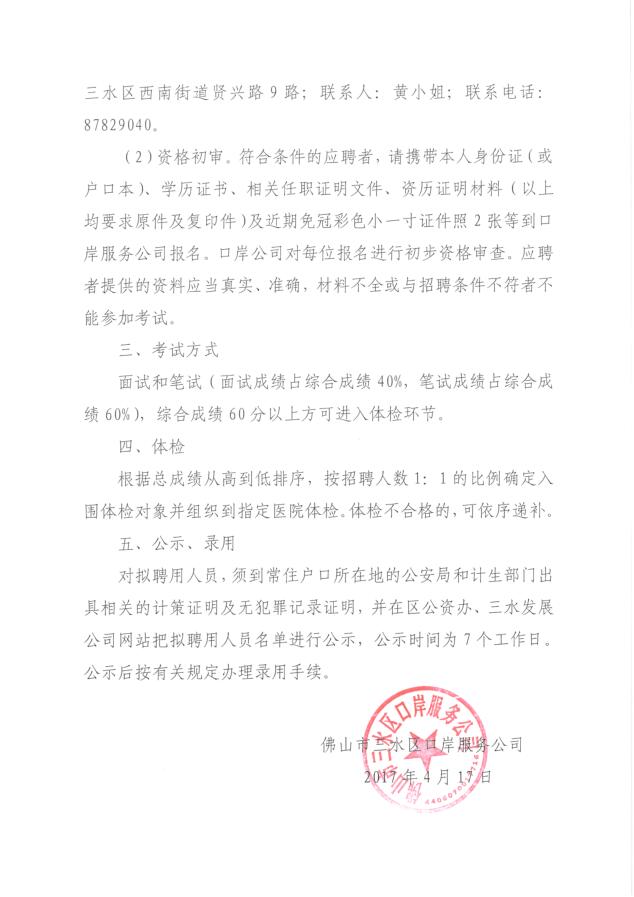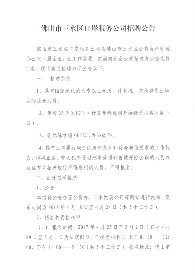 佛山市三水区口岸服务公司招聘公告
