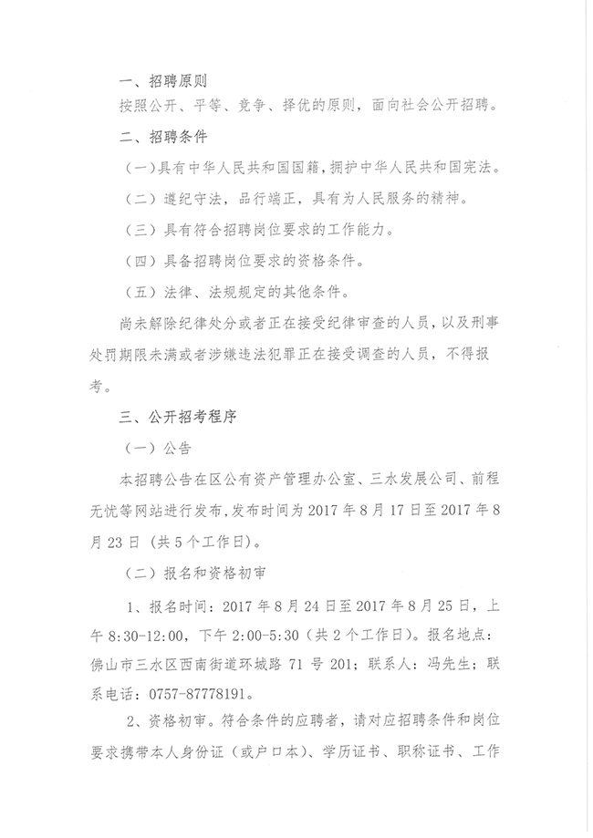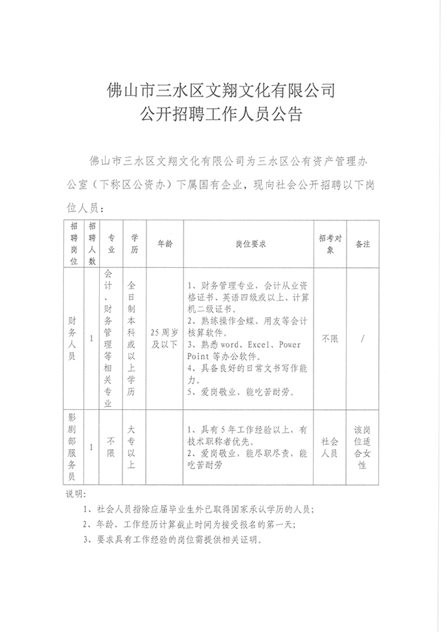 佛山市三水区文翔文化有限公司公开招聘工作人员公告