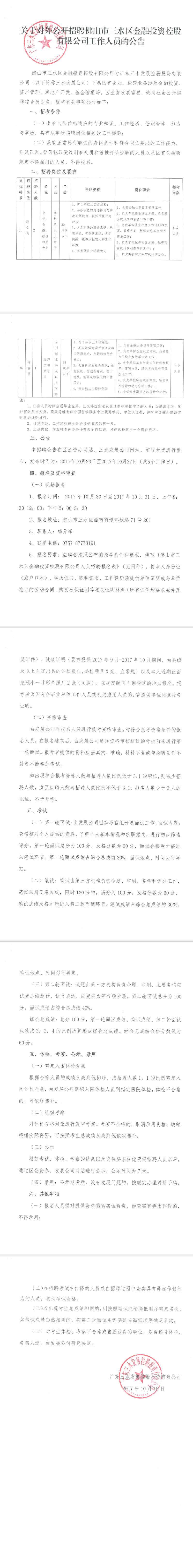 佛山市三水区金融投资控股有限公司人员招聘公告