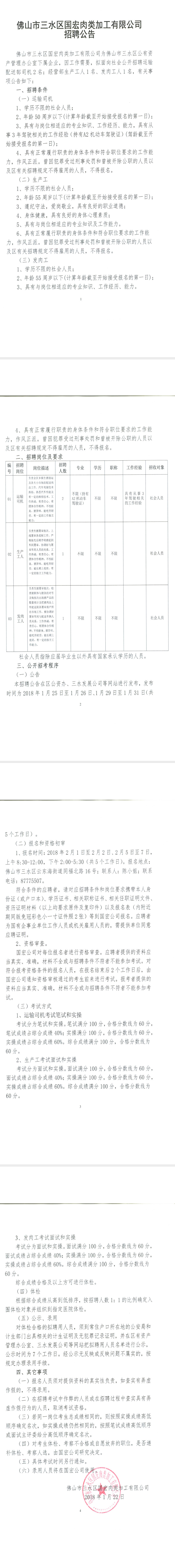 佛山市三水区国宏肉类加工有限公司招聘公告