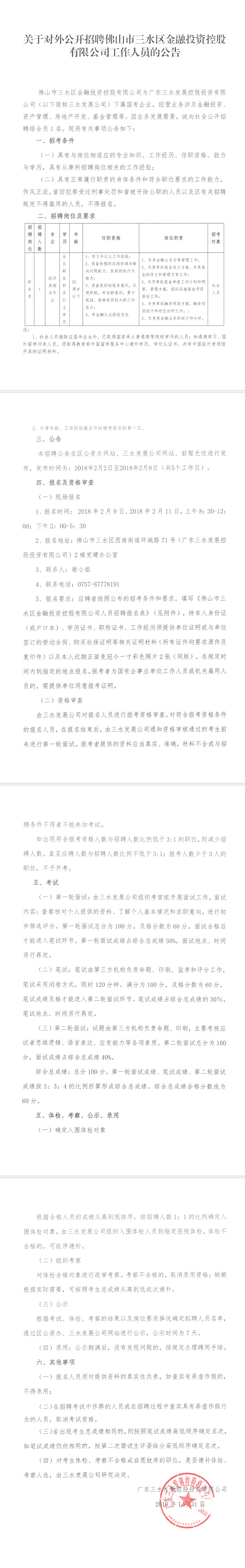 关于对外公开招聘金控公司综合员的公告