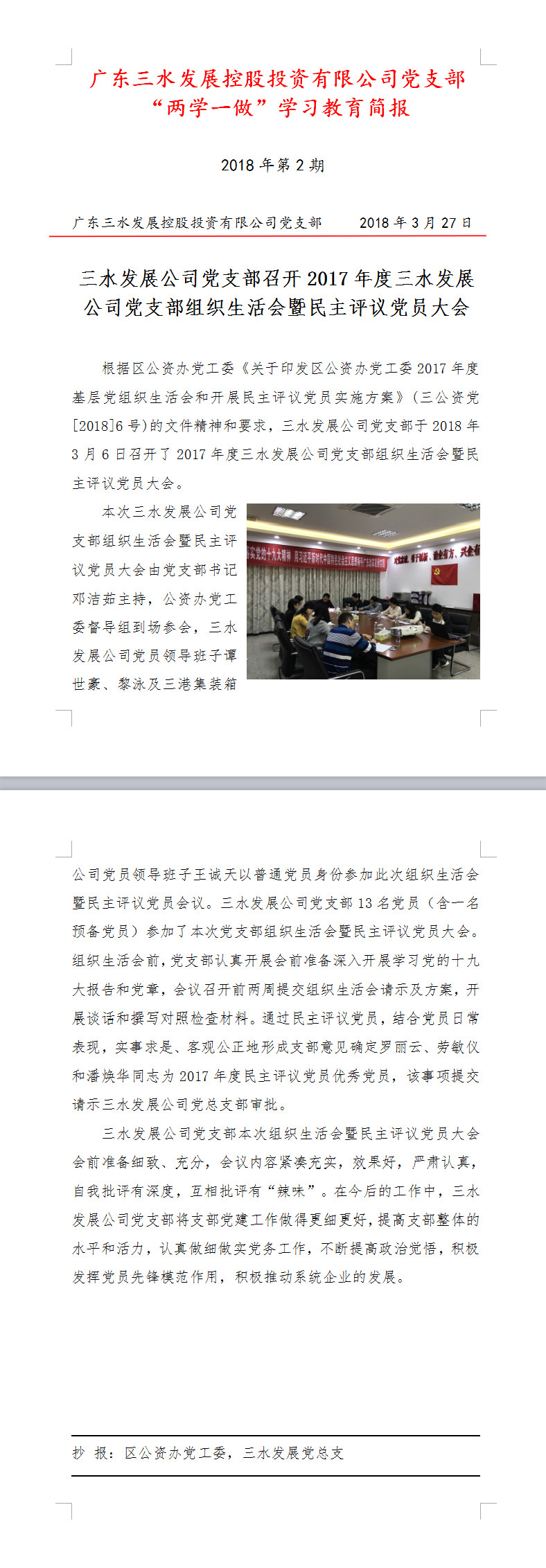 球盟会qmh公司党支部“两学一做”学习教育简报第2期——召开2017年度球盟会qmh公司党支部组织生活会暨民主评议党员大会