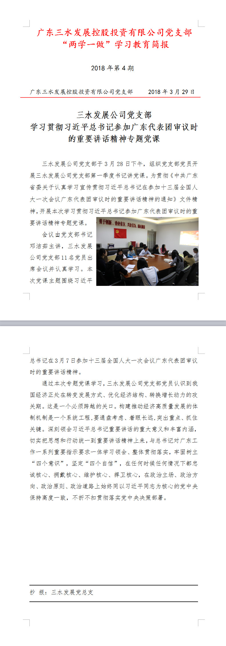 球盟会qmh公司“两学一做”学习教育简报第4期——学习贯彻习近平总书记参加广东代表团审议时的重要讲话精神专题党课