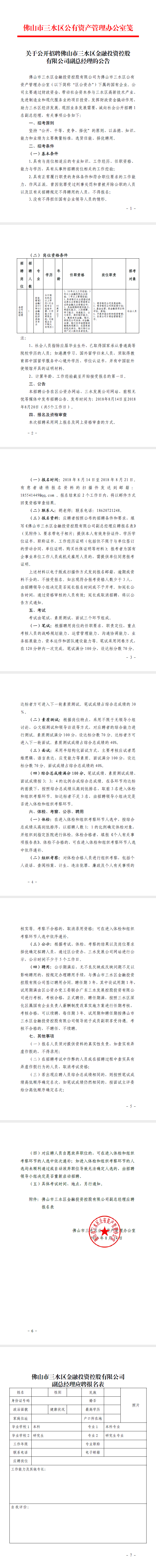 关于公开招聘佛山市三水区金融投资控股有限公司副总经理的公告
