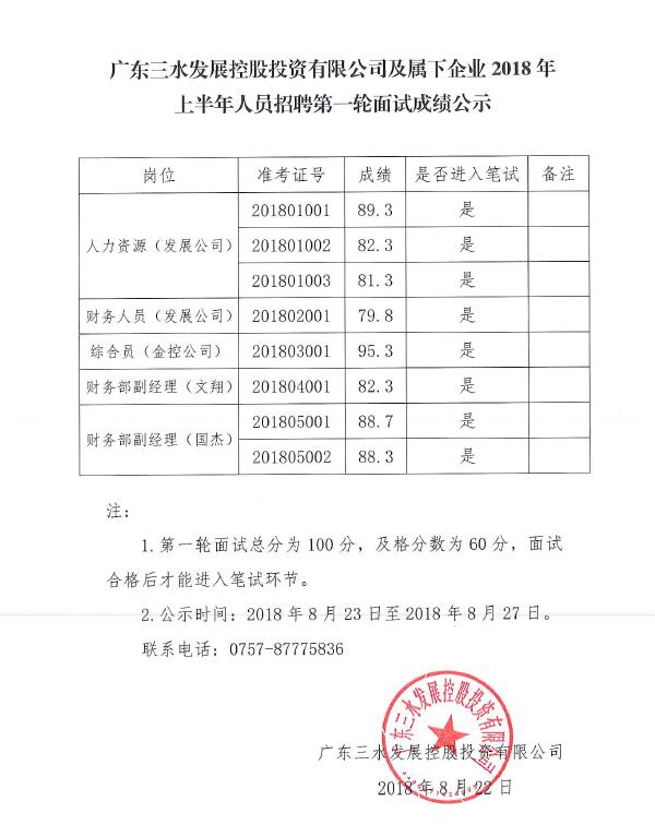 广东球盟会qmh控股投资有限公司及属下企业2018年上半年人员招聘第一轮面试成绩公示