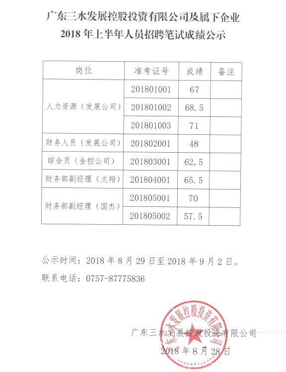 广东球盟会qmh控股投资有限公司及属下企业2018年上半年人员招聘笔试成绩公示