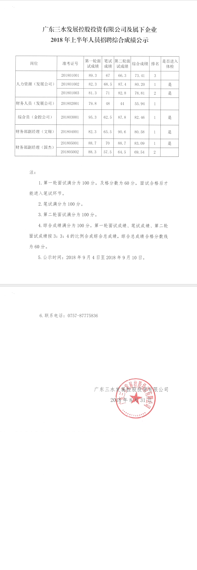 广东球盟会qmh控股投资有限公司及属下企业2018年上半年人员招聘综合成绩公示