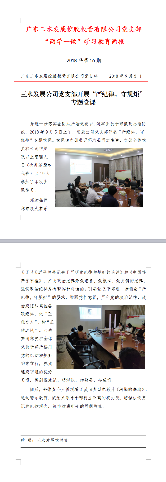 球盟会qmh公司党支部开展“严纪律,守规矩”专题党课