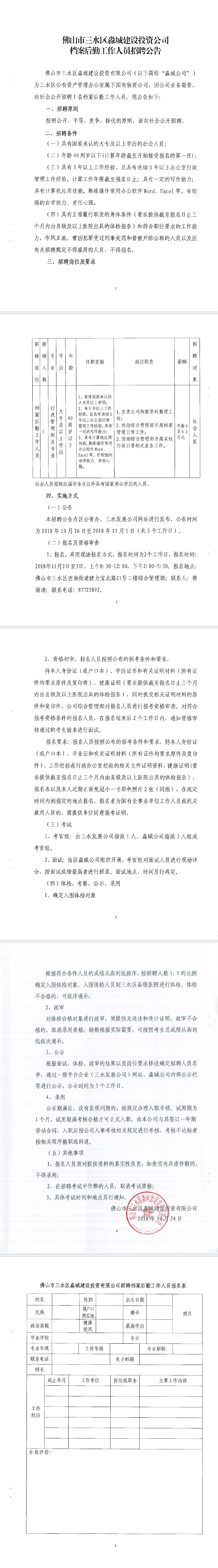 佛山市三水区淼城建设投资有限公司档案后勤工作人员招聘公告