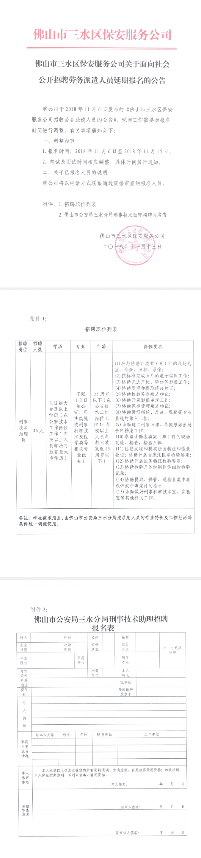 佛山市三水区保安服务公司关于面向社会公开招聘劳务派遣人员延期报名的公告