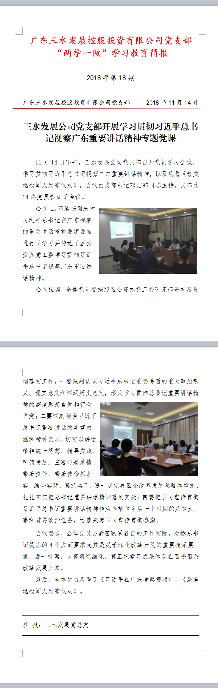 第18期两学一做工作简报20181114(学习贯彻习近平总书记视察广东重要讲话精神)
