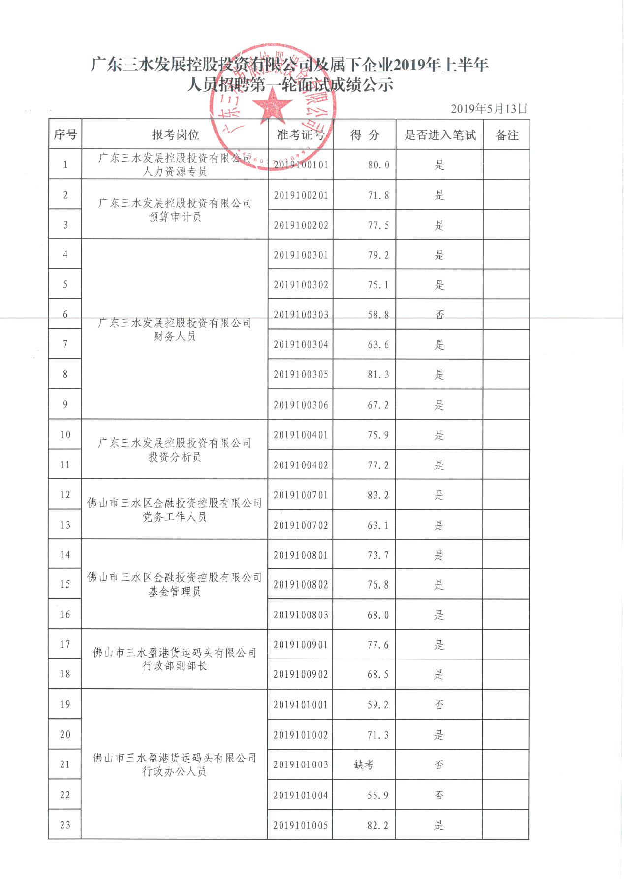 广东球盟会qmh控股投资有限公司及属下企业2019年上半年人员招聘第一轮面试成绩公示