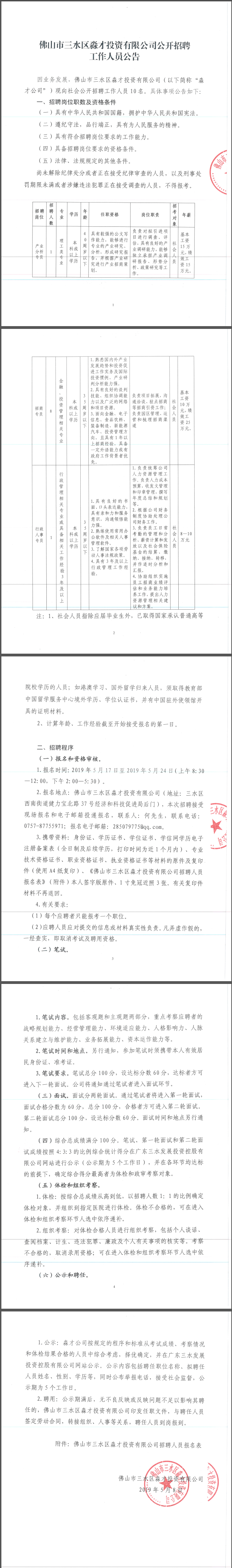 佛山市三水区淼才投资有限公司公开招聘工作人员公告