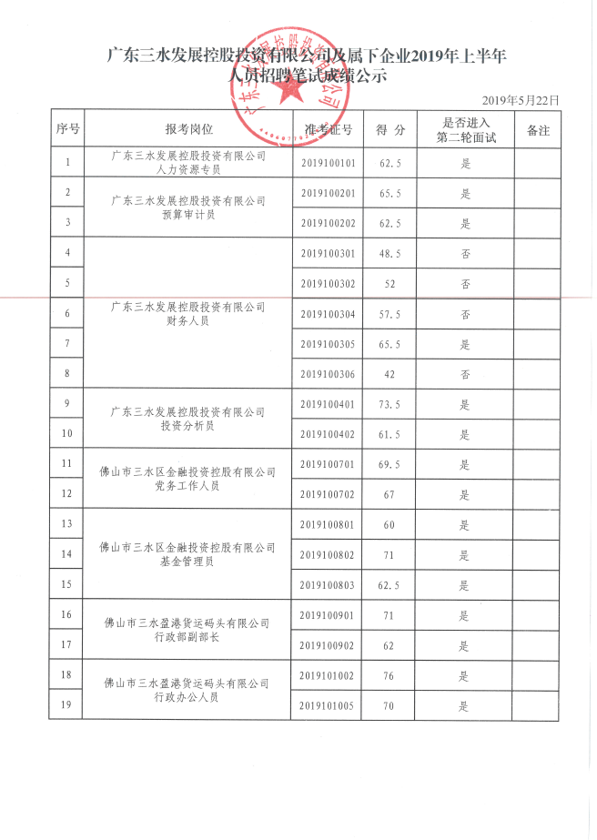 广东球盟会qmh控股投资有限公司及属下企业2019年上半年人员招聘笔试成绩公示