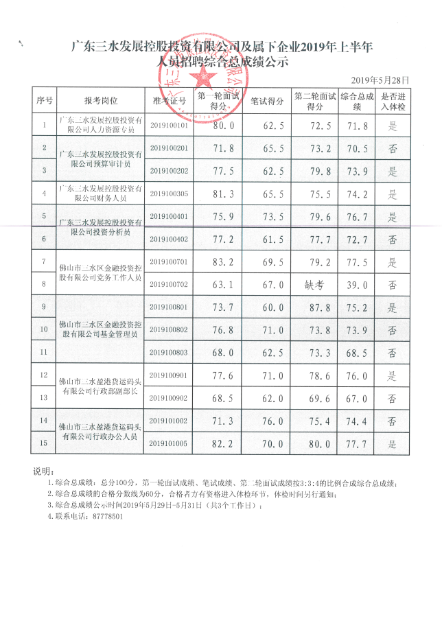 广东球盟会qmh控股投资有限公司及属下企业2019年上半年人员招聘综合总成绩公示