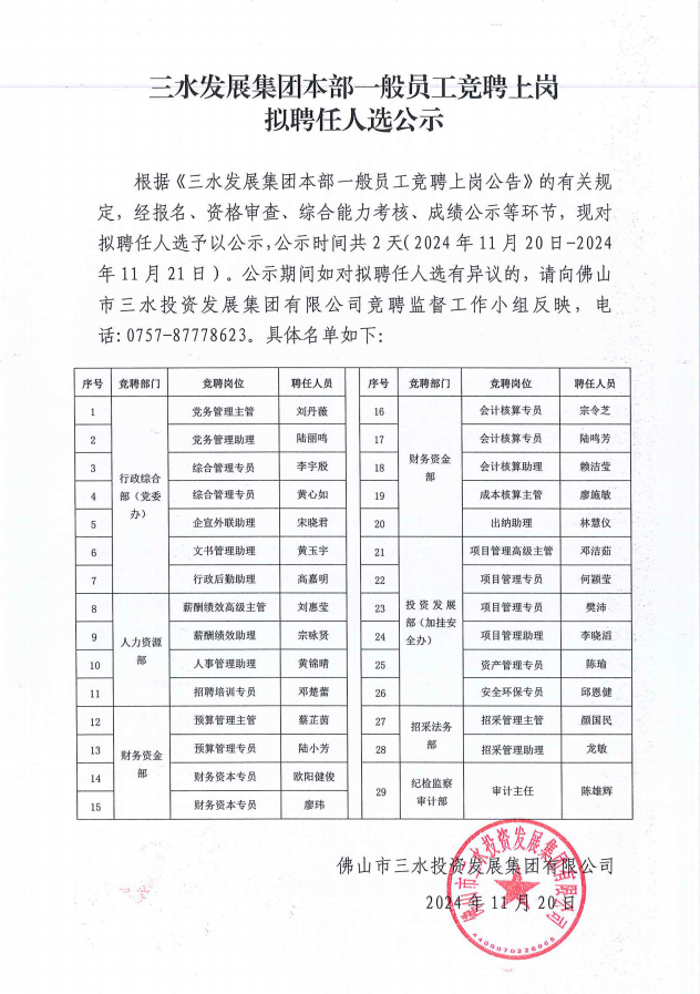 球盟会qmh集团本部一般员工竞聘上岗拟聘任人选公示