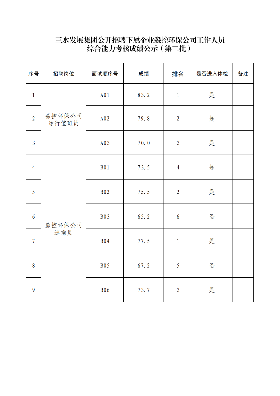 球盟会qmh集团公开招聘下属企业淼控环保公司工作人员综合能力考核成绩公示(第二批)